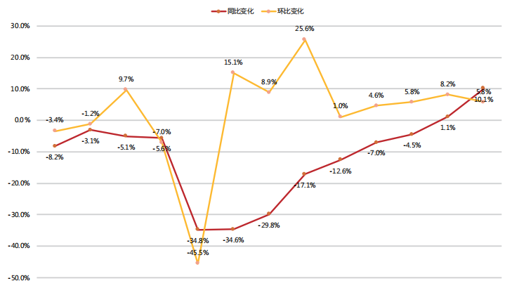 2019年10月—2020年10月广告刊例花费同比及环比变化