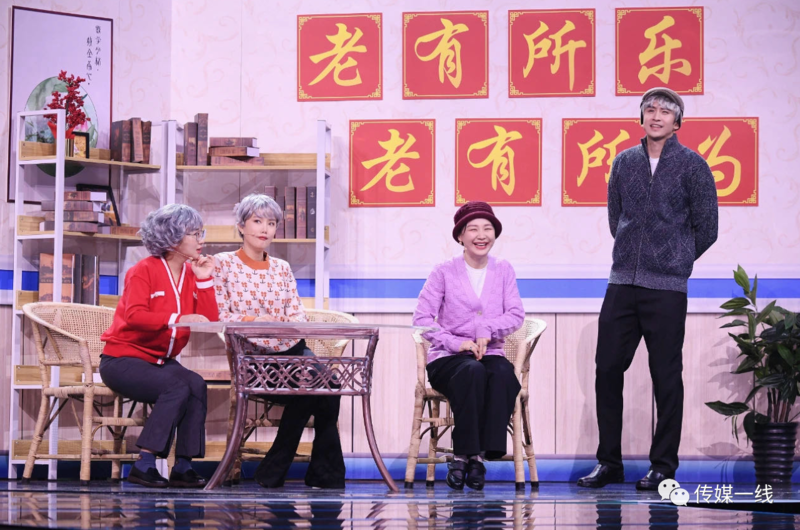 这样的设计使整个舞台的氛围感十足,强化了节目内容的实景呈现。譬如,情景脱口秀《凡尔赛的下午茶》中就利用旋转舞台划分为两个区域,合理分配演员调度空间,同时融入咖啡馆、养老院等不同场景进行快速切换过渡自然,增强了节目的时尚感和可看性。