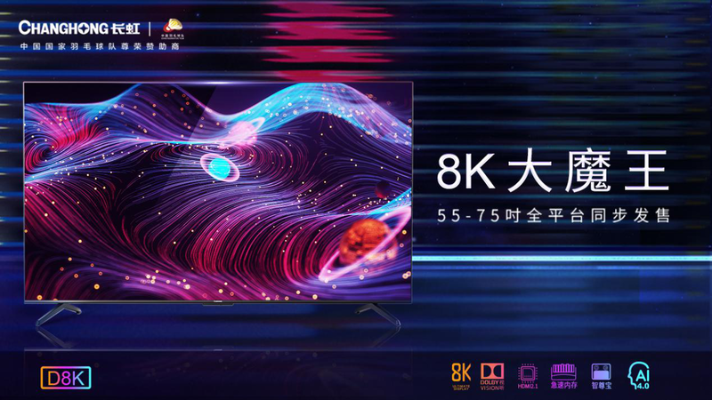 2月28日,长虹率先发布行业最薄屏体超薄8K电视和86吋超大屏MiniLED8K新物种,不仅搭载长虹最新一代极智屏3.0全生态应用,还实现了在线8K内容。继2020年发布5G+8K闪电侠、D8K大魔王等8K电视产品之后,目前长虹和旗下CHiQ已形成8大系列13款8K产品矩阵,覆盖55吋到110吋全场景,形成了完善的5G+8K+AIoT生态体系。