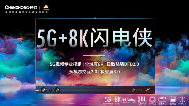 早在2020年4月,长虹就率先发布了首款实现5G通信的8K电视,该款产品命名为闪电侠,具有高速率、大容量、低时耗三大特性优势。电视核心搭载由长虹研发的全球首款5G视频专业模块,8K传输更快更省心。在5G网络下,电视端可以远程播放3D超高清视频,传输8K视频流,甚至实现赛场环境实时传输。同时,还可以以电视为中心连接家庭物联智能设备,为用户带来AIoT极致体验。