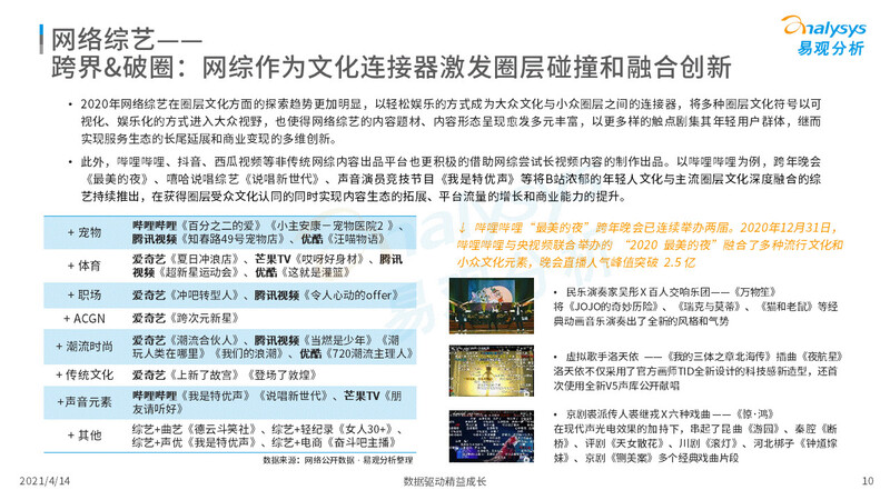 网综内容方面,衍生节目已成为头部节目标配,IP宇宙式开发演唱内容价值链条。线上线下生态联动更帮助视频平台快速实现以内容IP为基础的视频平台生态战略布局向线下场景的突破。