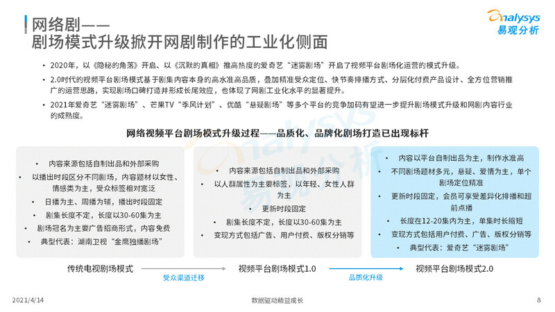 剧场模式升级掀开网剧制作的工业化侧面,包括爱奇艺“迷雾剧场”、芒果TV“季风计划”、优酷“悬疑计划”等剧场深耕短剧,有望进一步提升剧场模式升级和网剧内容产业的成熟度。
