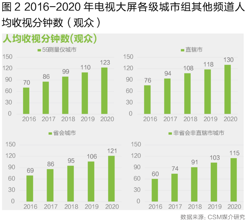 直辖市、省会城市其他频道收视增幅提速,每收视观众日均收看超2小时