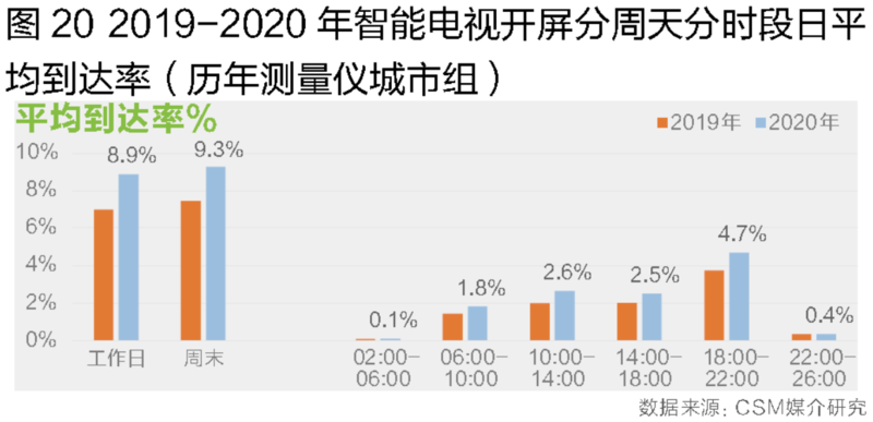 周末、晚间黄金时段智能电视开屏“日活”更高