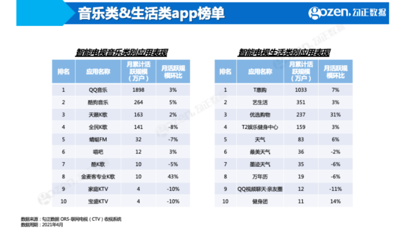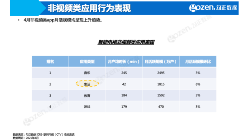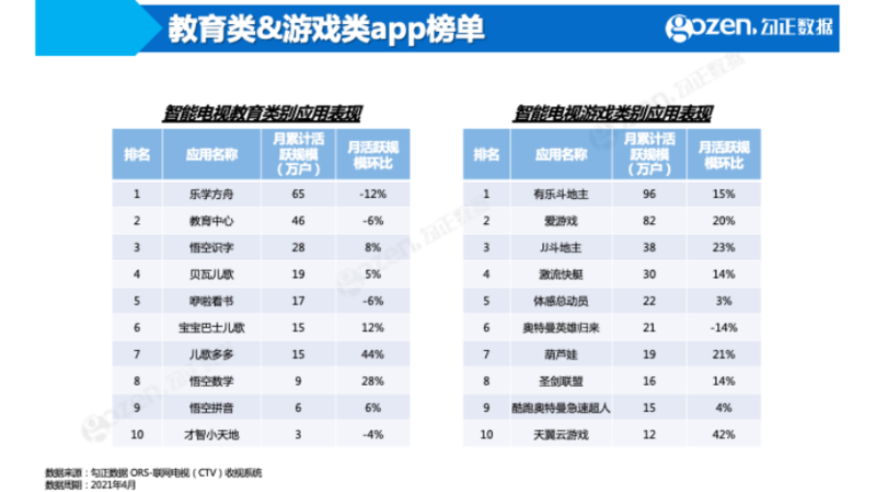 基于家庭智能大屏来看,根据勾正数据(Gozendata)显示,4月: