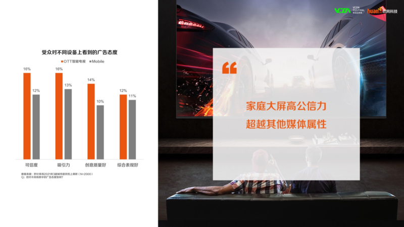 家作为生活、娱乐、消费深度融合的重要阵地,智能大屏以强视觉冲击与震撼创意强势抢占家庭客厅中心,可实现品牌信息更有效的传递,与此同时家庭大屏的公信力远超其他媒体属性。