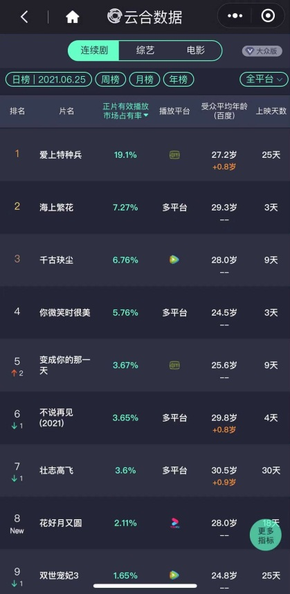 长视频平台依靠选秀、耽改、仙侠这三大流量内容支柱,一定程度上造成了用户低龄化,也限定了其营销价值的进一步突破。以6月24日的云合数据为例,正片有效播放量排名前十的网剧中,受众平均年轻(百度)在30岁以上的屈指可数。