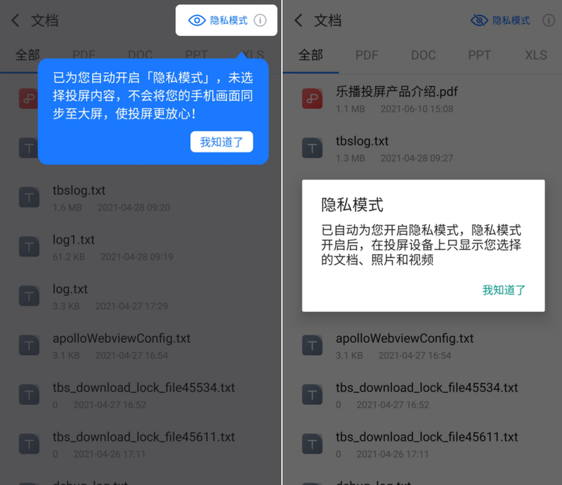 而且,如果投屏使用的是安卓手机,在退出投屏文档时,系统还会自动开启隐私模式,手机上未选择的内容,将不会被同步至大屏。在会议等多人场景中,这无疑是贴心且实用的功能。