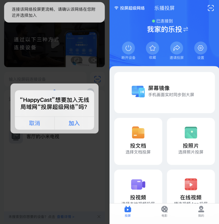 即使在没有网络的情况下,通过乐播乐投的自带WiFi投屏功能,同样可以实现大小屏之间的顺畅连接。