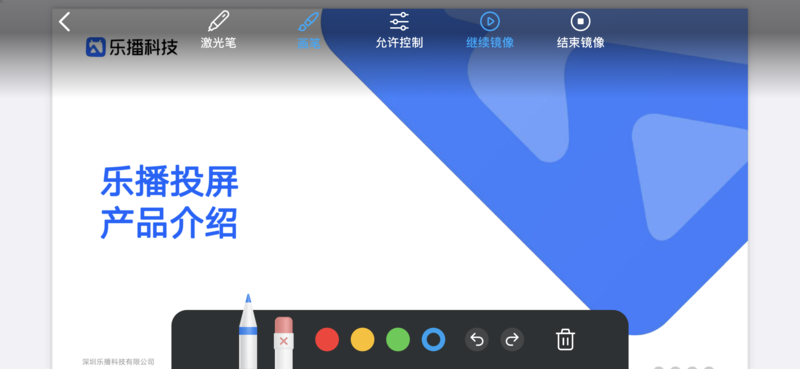 再比如投文档,PPT、PDF、Word、Excel等文档,都可以方便地投屏,演示期间,不仅可以使用乐播投屏APP中的激光笔、画笔等便捷功能,还可以通过乐播乐投的遥控器进行反控。