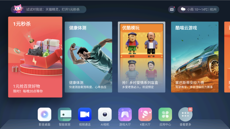 此外,作为阿里生态的重要组成部分,酷喵让用户能充分享受阿里生态的丰富数字化生活服务。“左一屏”中的淘宝、饿了么等小程序,能够让你直接在大屏上购物、下单外卖,不再需要从电视上移开视线低头操作手机,而是可以一边看电视、一边点外卖,互不耽误。