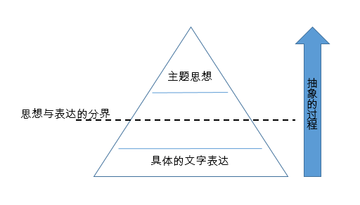 美国的汉德法官在1930年首先提出了著名的“金字塔”形结构,以区分具有故事内容的作品中的思想与表达(如下图所示)。越靠近金字塔底部,表达越具体;相反,越接近金字塔顶部,涉及的内容愈发抽象。从金字塔底部的细节表达直至金字塔顶部抽象思想,是一个不断抽象概括的过程。因而汉德法官认为,从金字塔底部往顶部的通道之间,存在一个思想与表达的临界点:凡是超过该临界点,作品的内容因进入思想领域而不受著作权法保护,著作权人无权主张他人构成著作权侵权。