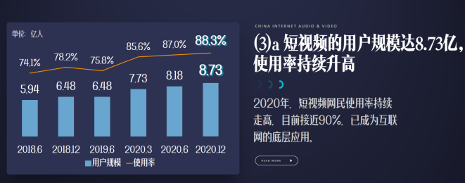 除了电视大屏本身,移动互联网时代,视频形态和观看方式也在不断发生着变化,并对电视直播频道产生侵蚀。《2021中国网络视听发展研究报告》显示,2020年,我国网络视听用户规模达9.44亿,其中,短视频用户规模达8.73亿,网络直播用户规模达6.17亿。此消彼长,传统电视直播的价值其实也在不断消解。