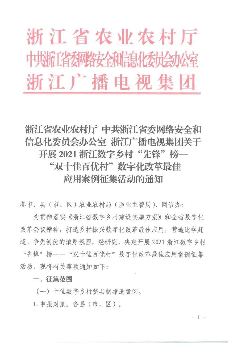 2021浙江数字乡村“先锋”榜——“双十佳百优村”数字化改革最佳应用案例征集活动全面启动!