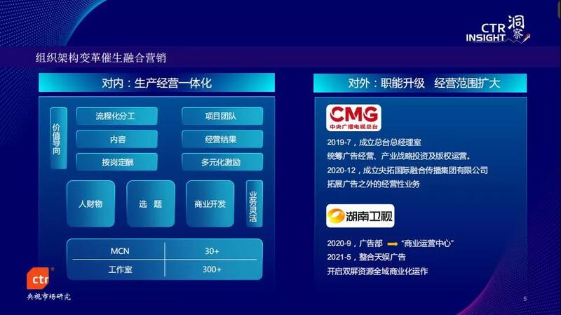 省级广电机构中,湖南卫视也于2020年9月,将广告部升级为商业运营中心,并在2021年5月进一步整合天娱广告,开启双屏资源全域商业化运作。