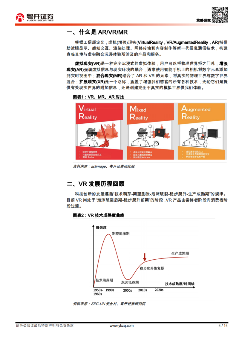 根据工信部定义,虚拟(增强)现实(VirtualReality,VR/AugmentedReality,AR)指借助近眼显示、感知交互、渲染处理、网络传输和内容制作等新一代信息通信技术,构建身临其境与虚实融合沉浸体验所涉及的产品和服务。
