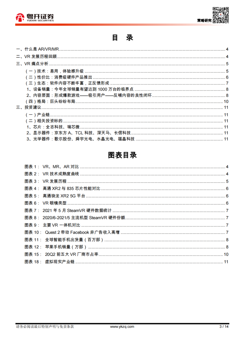 (三)生态:软件内容不断丰富,正反馈形成。回顾科技产品的发展规律,网络效应和规模效应能形成正反馈,促进出货量高增。对VR产品也同样如此,形成网络和规模效应有设备和内容两大要求,根据我们测算,今年VR全球销量有望达到1000万台的临界点;内容层面,参考智能手机的发展路径,1万软件应用+1000万的设备量会带来非常大的推动力,当前VR游戏应用总量6000款左右,临界点在即,已形成爆款游戏——吸引用户——反哺内容的良性闭环。展望未来,平台内容的不断丰富将持续提高用户对VR社交的黏性与需求。