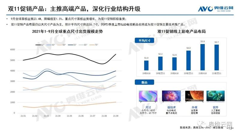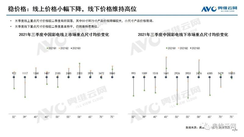 稳价格:从零售均价来看,线上重点尺寸价格有所回落,市场均价自7月开始缓慢下降,9月为2638元;线下重点尺寸价格基本持平,仍然维持在高位。