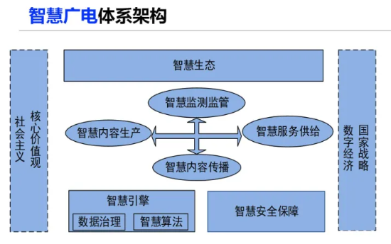 在智慧广电的体系整体架构中,应包含以下七大板块构成: