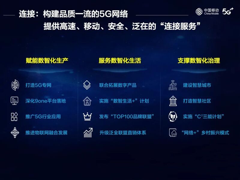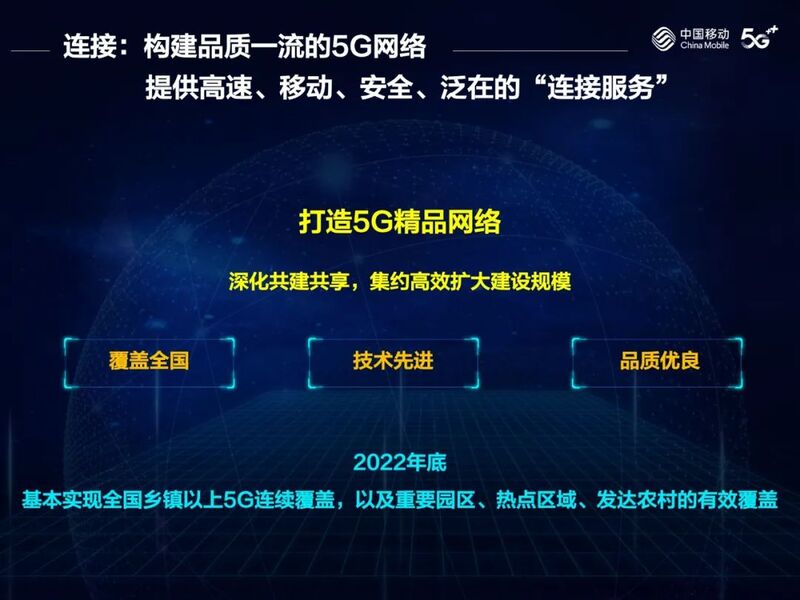 第一,构建品质一流的5G网络,提供高速、移动、安全、泛在的“连接服务”。
