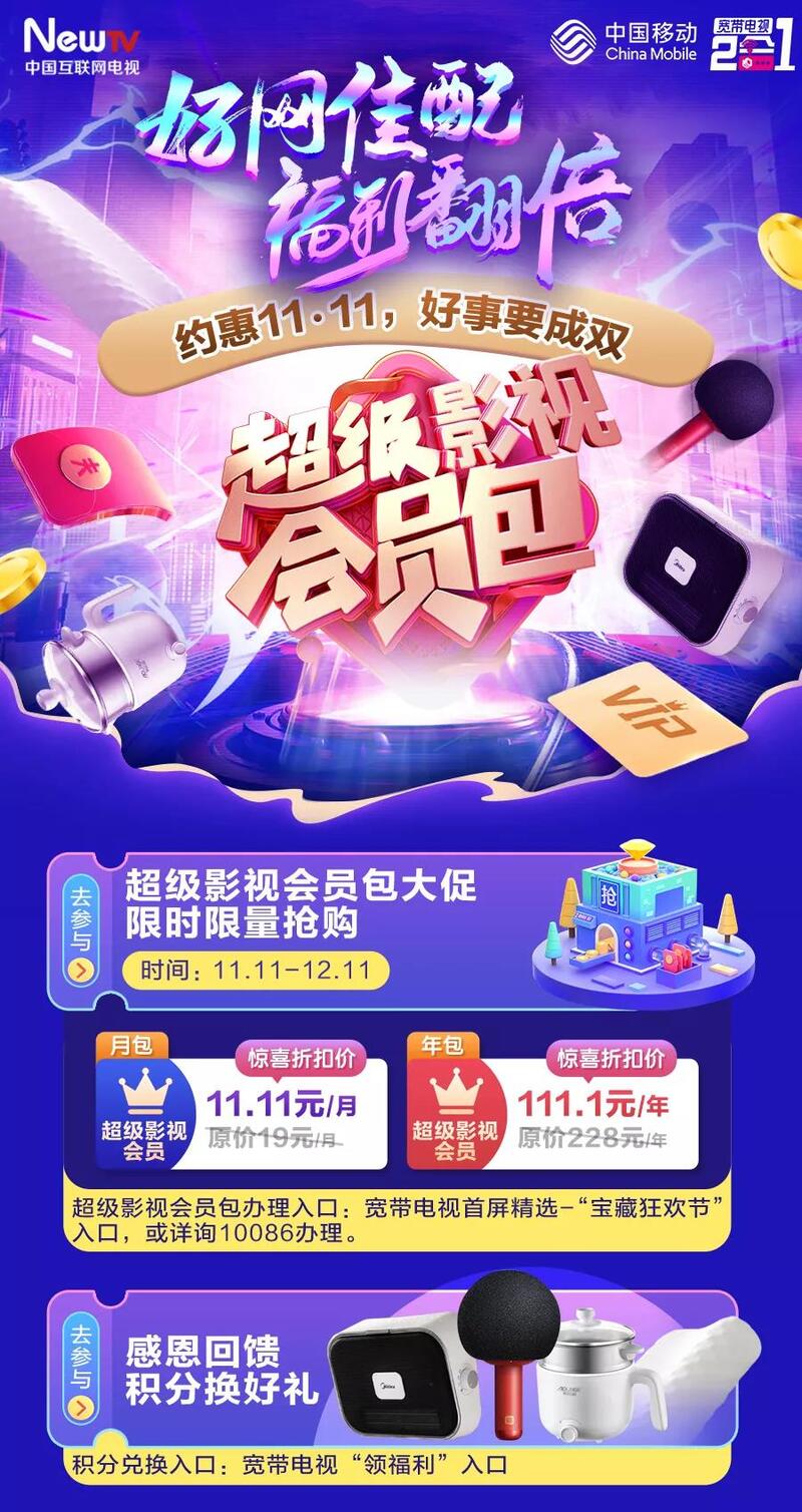 广西移动宽带电视:“双十一”福利大放送!好网佳配,福利翻倍!
