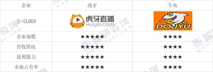 虎牙在企业规模、营收情况、盈利能力、市场占有率方面均优于斗鱼,总体来看,虎牙优势明显。