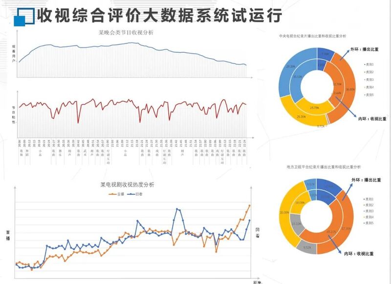 节目收视综合评价大数据系统抛弃传统的收视调查模式,创新建设了一套以云计算、全网络、全样本、大数据为重要特征的新型大数据收视调查体系。