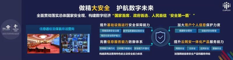 五是做精大安全,护航数字未来。网络安全事关国家安全、社会稳定、经济发展和人民福祉,守护网络安全是信息通信央企的第一责任。中国联通将全面贯彻落实总体国家安全观,聚焦通信安全、网络安全、信息安全、数据安全,构建从安全合规到安全服务、生态繁荣的“大安全”体系,从安全“后援保障队”跃升为“保驾护航先锋队”,构建数字经济“国家首席、政府首选、人民首信‘安全第一盾’”。通过做精大安全,构筑网络空间攻防兼备、安全可信的第一道防线,当好新型数字信息基础设施的坚强守护者。