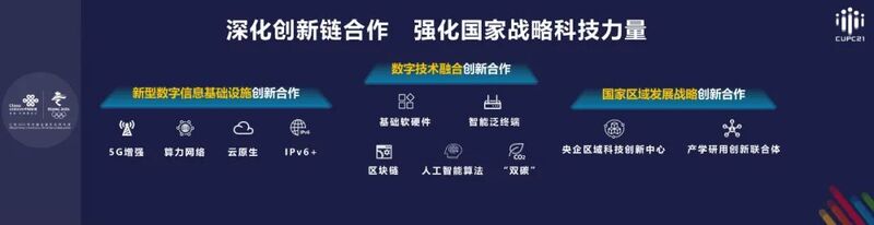 一是深化创新链合作,强化国家战略科技力量。中国联通坚持 “开门搞创新,共创为共赢”,与各方携手开展更为深入的协同创新。在新型数字信息基础设施方面,面向5G增强、算力网络、云原生、IPv6+等领域,开展研发协作,推动技术效能新提升。在数字技术融合创新方面,面向通信芯片、操作系统、数据库、人工智能关键算法、智能泛终端、“双碳”等领域,加强核心技术攻关,破解技术应用难点痛点。在服务国家区域发展战略方面,布局央企区域科技创新中心,打造产学研用创新联合体,推动科技成果更快从实验室走向工程化、产品化,加速关键领域更多原创性、引领性突破,促进科技自立自强。中国联通稍后将发布“科技创新合作计划”,为各类新产品新技术新应用提供技术支撑、网络平台、商用环境,助力产业科技高水平自立自强,共同构筑国家战略科技力量。