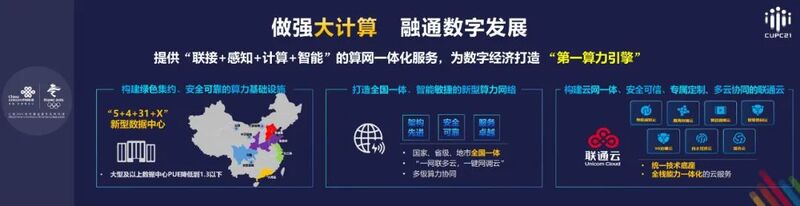 二是做强大计算,融通数字发展。算力正在成为数字经济发展的新引擎、国家硬实力的新体现、全球战略竞争的新焦点。中国联通整合网络与算力资源,推进架构先进、安全可靠、服务卓越的算力网络新布局,构建以算力为核心的算网融合新生态,提供“联接+感知+计算+智能”的算网一体化服务,为数字经济打造“第一算力引擎”。着力构建绿色集约、安全可靠的算力基础设施;着力构建全国一体、智能敏捷的新型算力网络;着力构建云网一体、安全可信、专属定制、多云协同的“联通云”。通过做强大计算,形成数网协同、数云协同、云边协同、绿色智能的多层次算力设施体系,支撑不同维度、不同层次全面多样的数字化需求,为经济社会高质量发展提供强劲算力引擎。