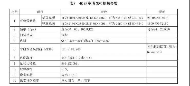 4K超高清SDR视频参数