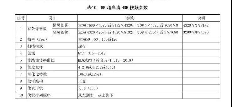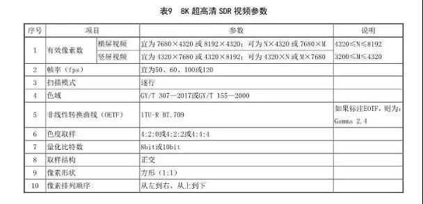 8K超高清SDR视频参数