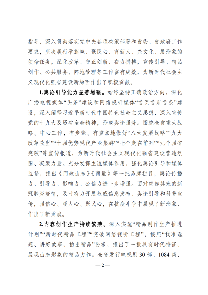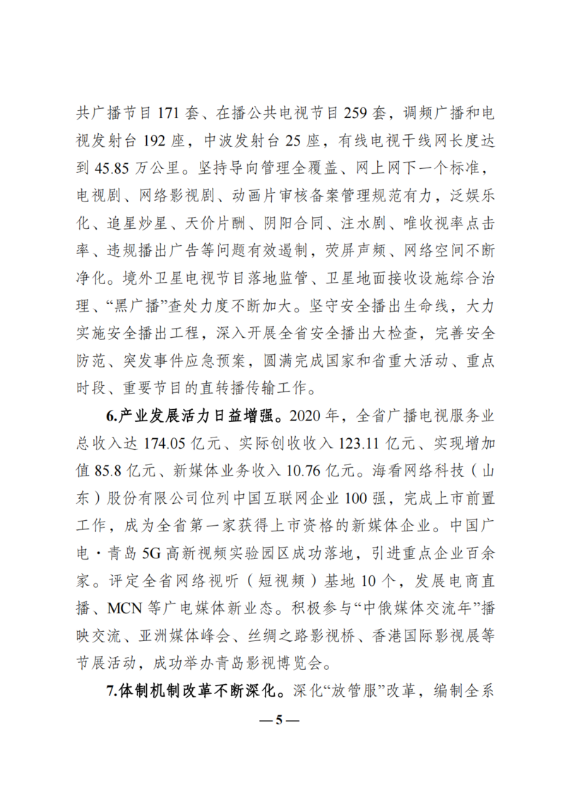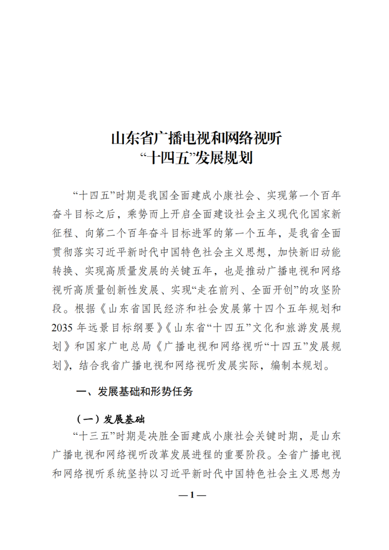 山东省广播电视和网络视听“十四五”发展规划的通知