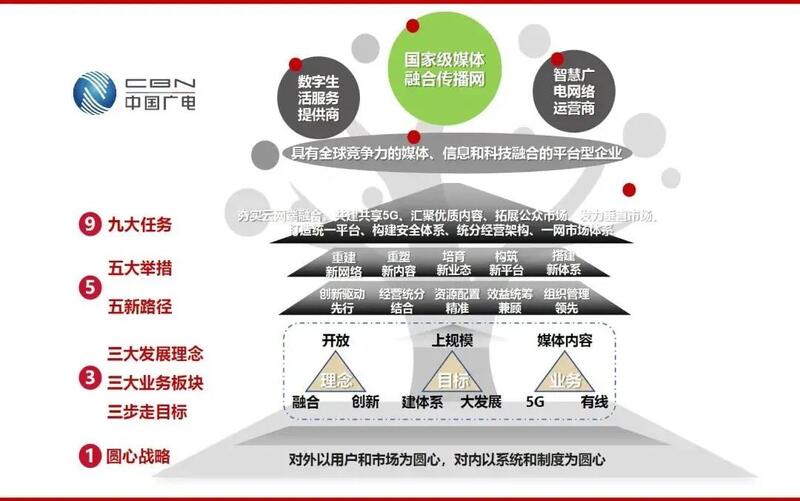 “3”是要秉承“创新、融合、开放”三大发展理念,聚焦有线电视、5G、媒体内容及创新三大业务板块,实现三步走战略目标。