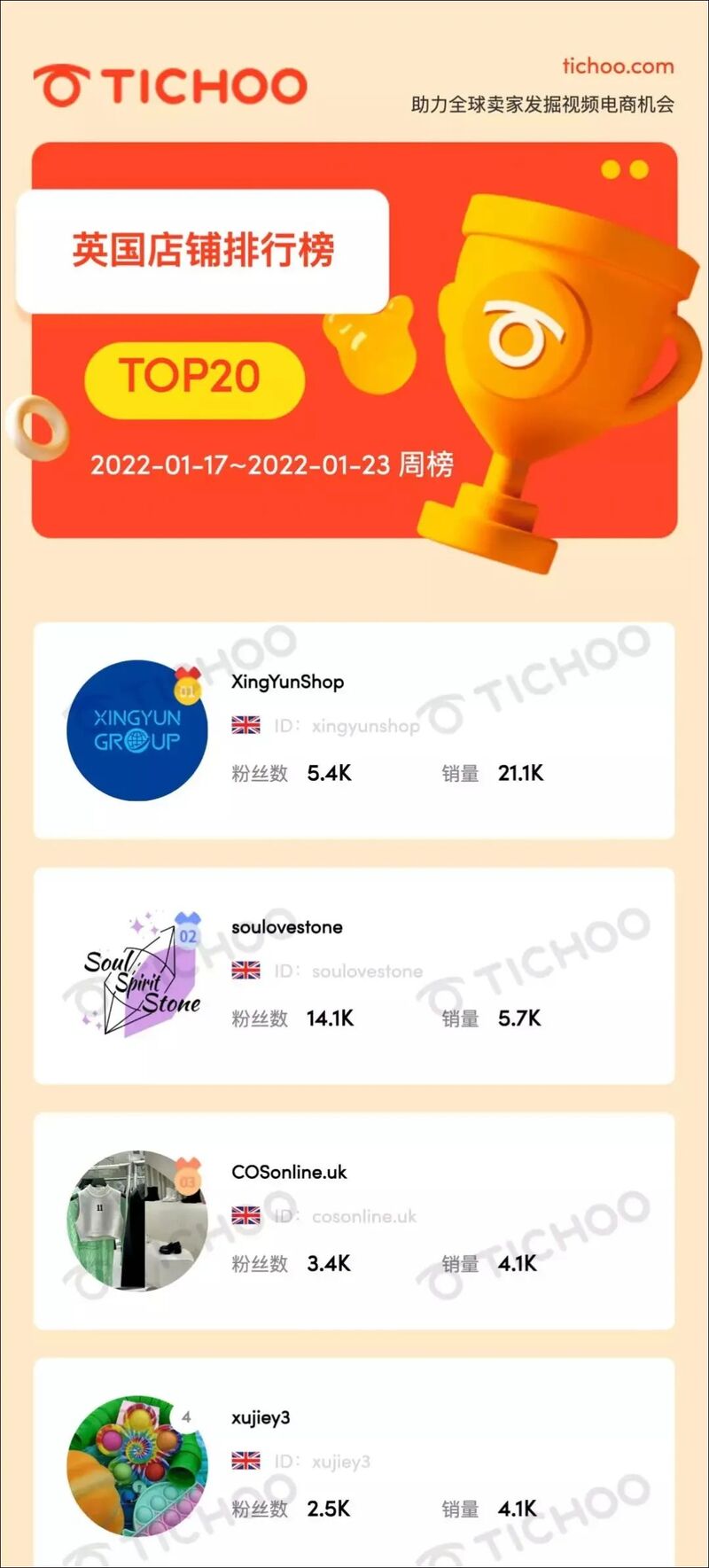 此外,据36氪报道,一家在Tichoo成交量日榜稳定于英国区店铺前十的卖家,其持续开播三个月,虽然单场销售额翻了近20倍,但在高速的增长之下,其最高的单场销售纪录也仅到达1800余英镑,这和国内抖音电商前十单场能到达百万人民币级别的销售额来说,还差了一百倍。