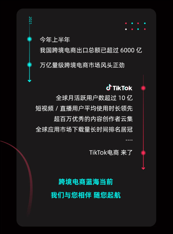 2020年,第一批跨境玩家入场TikTok。但此时,他们更多的是采用视频分发的模式,仅仅是照搬国内视频或者改头换面包装账号的方式。之后这些跨境卖家开始跑通TikTok广告投放和自然流量,让TikTok成为了站外引流的一个新趋势。