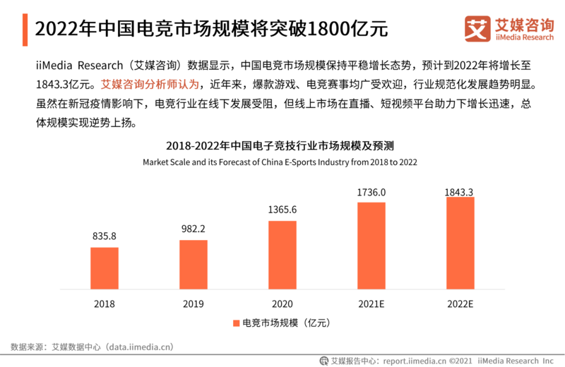 【流媒体网】摘要:电竞直播发展正处黄金时期,2022年市场规模将突破400亿元。(文末附有报告全文链接,欢迎今日流媒体VIP下载阅读!)