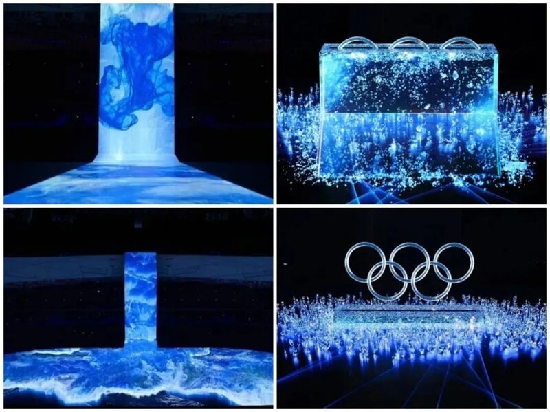 开幕式上,黄河之水奔腾而下、奥运五环破冰而出的震撼场景得益于现场的7个8K机位和总台自主研发的A6转播车,以及摇臂、航拍直升机等特种设备的协同操作。