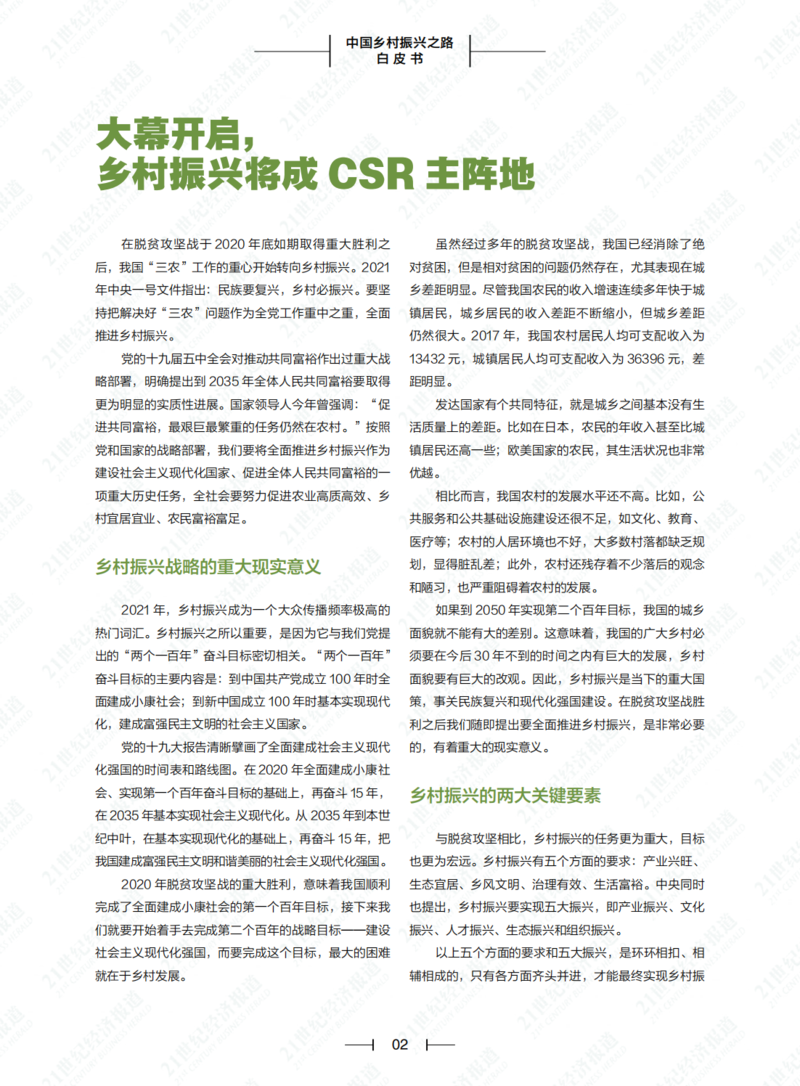 【报告】2021中国乡村振兴之路白皮书(附PDF)