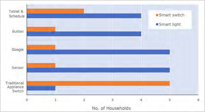 与安装在卧室或餐厅的智能开关相比,位于厨房或客厅的智能开关使用最多。参与者更喜欢应用语音命令来与灯交互,而不是与开关本身交互,因为他们没有信心与不同的灯光进行准确的切换,尤其是那些有触觉的面板,因为他们发现不知道哪个是令人困惑的按钮,哪个需要根据灯光按下不同的击键次数。