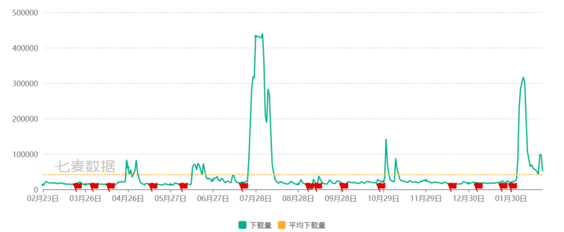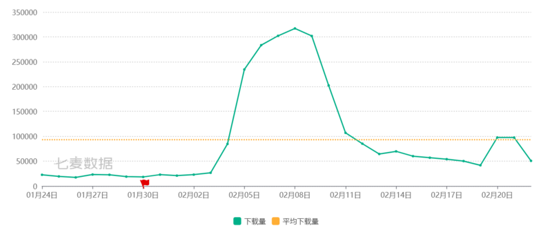七麦数据显示,iPhone端平时日均下载量不到2万的咪咕视频,冬奥会期间提升了10倍,2月8日下载量甚至突破30万。但这只是短暂的狂欢,冬奥还未结束时下载量就已断崖式下跌,22日的下载量已跌至5万。