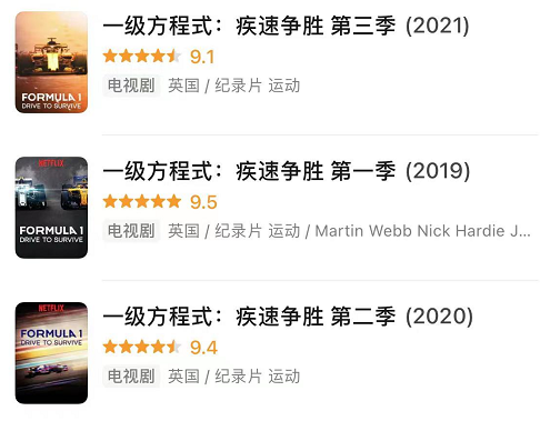 当然,这些好的反响除了赛事本身受到关注之外,很重要的一点还在于优质的团队制作,不管是F1纪录片还是《孤注一掷》系列,豆瓣评分都在9分以上,只有优质的内容才能真正实现价值的可持续挖掘。
