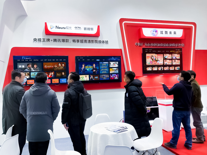 在本次展会上,未来电视带来了两款互联网电视大屏旗舰应用——NewTV 极光和CCTV.新视听,全矩阵呈现央视王牌栏目,展现用户熟悉的央视符号、面孔和画面,这意味着用户可根据自己的时间安排轻松点播《开门大吉》《朗读者》《越战越勇》《中国诗词大会》等节目内容;同时海量腾讯内容涵盖资讯、电视剧、电影、综艺、动漫和体育等类别,实现爆款内容、最新热剧应有尽有、一键直达,也将满足用户多元化需求。