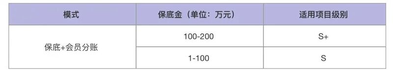 如平台评估可支持保底,作者可选择保底+会员分账。当会员分账的收益等于或低于保底金,平台向作者支付保底金,当会员分账收益高于保底金,按会员分账模式结算收益。保底有两种不同档位,具体如下: