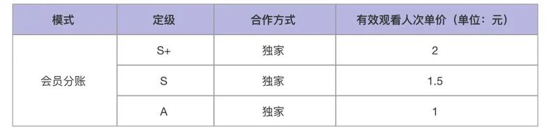 1.1、有效观看人次单价:即平台将根据作者提供的小节目成片,从制作水准、内容价值等维度综合评定出内容级别,该级别对应的单价即为有效观看人次单价。