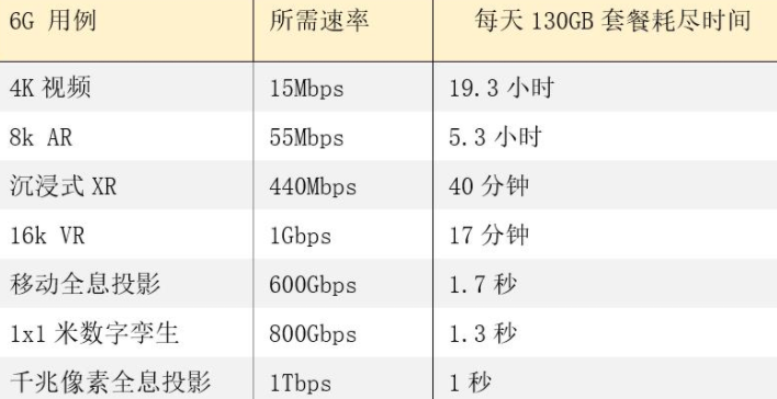 如果按照上述峰值速率,同时总结目前月流量10GB左右,以及5G的月流量几百GB的经验数据,到6G时代,月流量将会达到几个TB,即每天流量超过100GB。毕奇表示,也就是说,现在一年的流量,在6G时代是每天的流量。此外,目前的系统反应是亚毫秒级,到了6G,可能小于毫秒级。