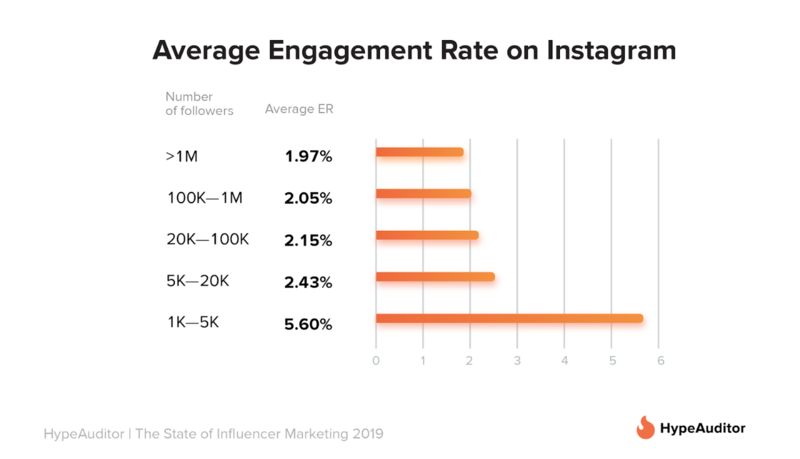 图注:纳米级网红的参与度是其他大V或者意见领袖的两倍 来源:HypeAuditor