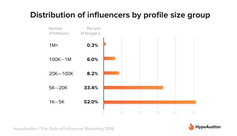 图注:Instagram上粉丝量超过100万的KOL占比仅达0.3% 来源:HypeAuditor