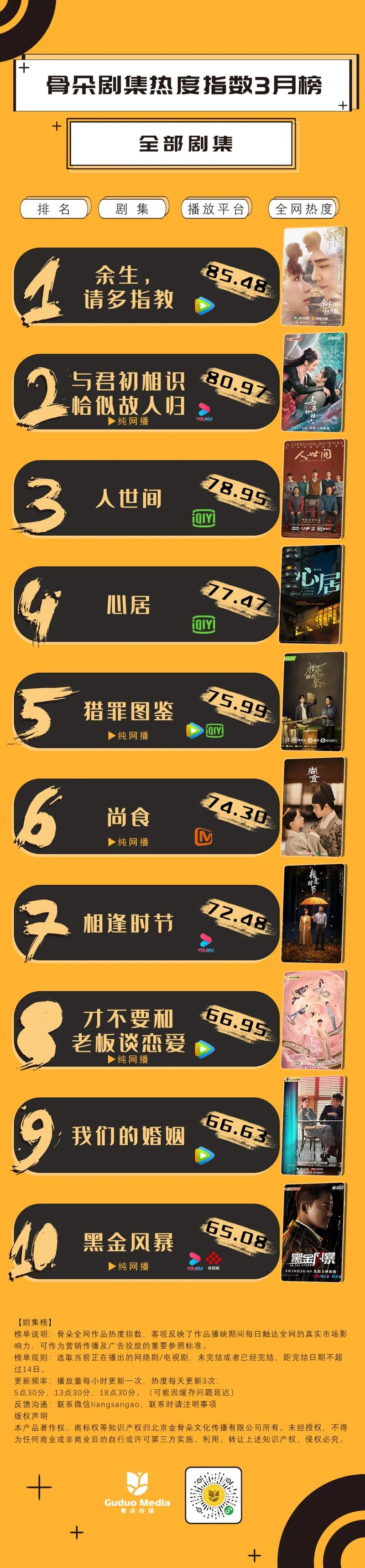 2022年3月剧集月榜丨《余生,请多指教》《与君初相识》引领本月热度