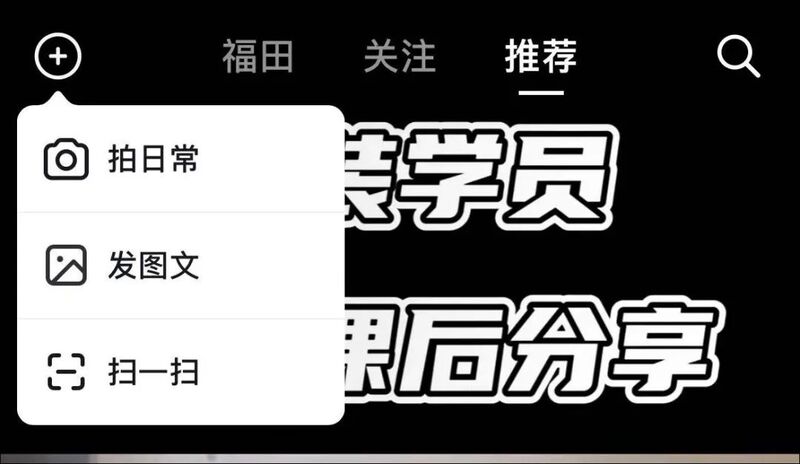 新版中,左上角的「扫一扫」确实没了,但取而代之的不是抖音「商城」,而是一个集合了「拍日常」、「发图文」、「扫一扫」三个功能的加号。